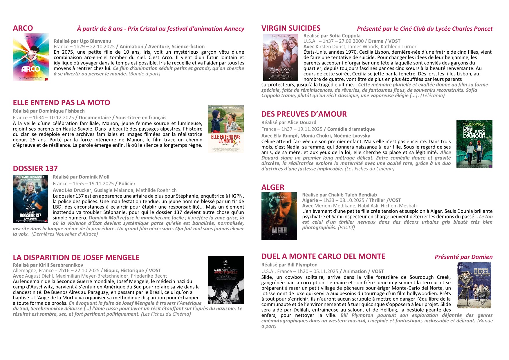 Tous nos anciens programmes sont dans le dossier archives du site. Si vous souhaitez des informations sur un film en particulier, merci de préciser votre demande et nous nous efforcerons d’y répondre si nous le pouvons. A bientôt au cinéma.