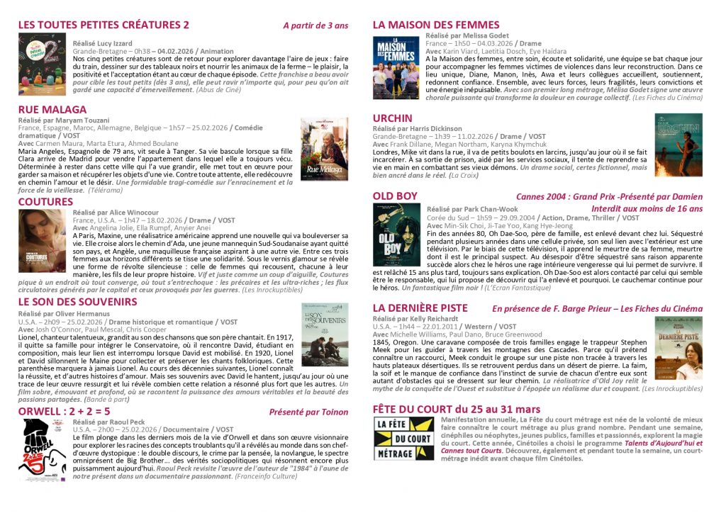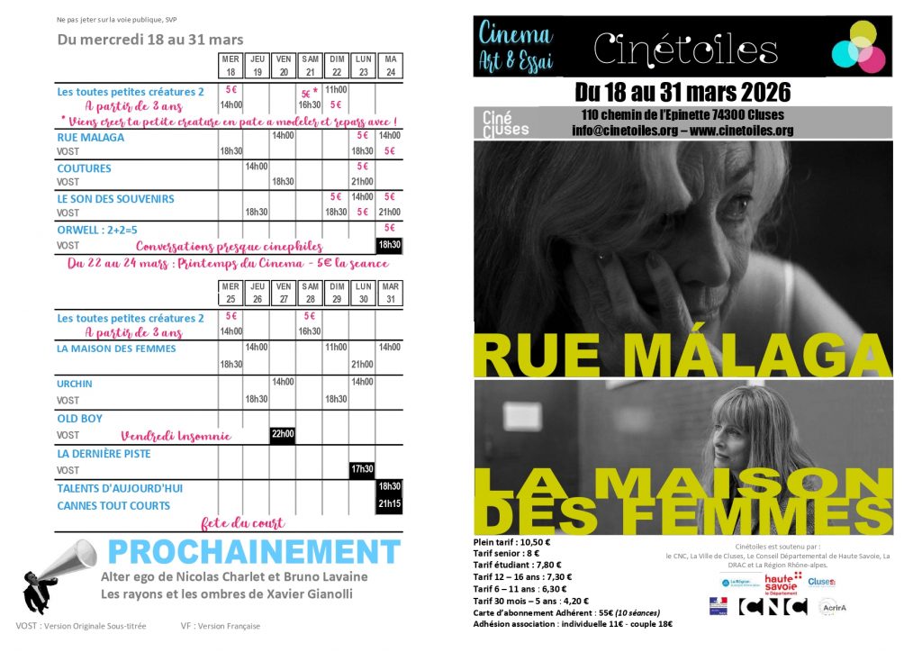 Réservez vos places sur le site :https://www.cinemonde.fr/cluses ou cliquez sur le lien vers CinéCluses pour un accès direct.