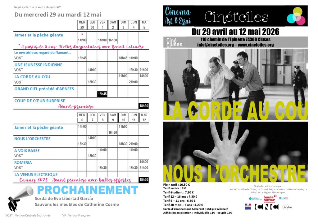 Réservez vos places sur le site http://www.cine-cluses.fr ou cliquez sur le lien vers CinéCluses pour un accès direct.