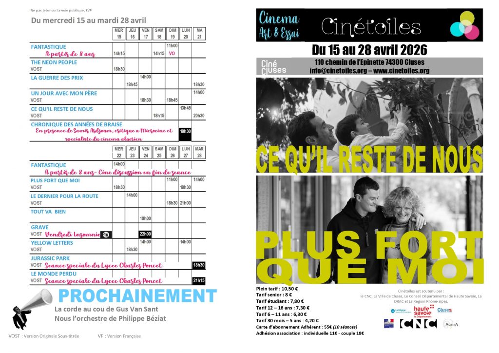 Effectivement, la période d’adhésion à Cinétoiles commence début août pour un an et il faut donc la renouveler. Vous pouvez le faire aujourd’hui au forum des associations place des allobroges ou à l’accueil du cinéma.